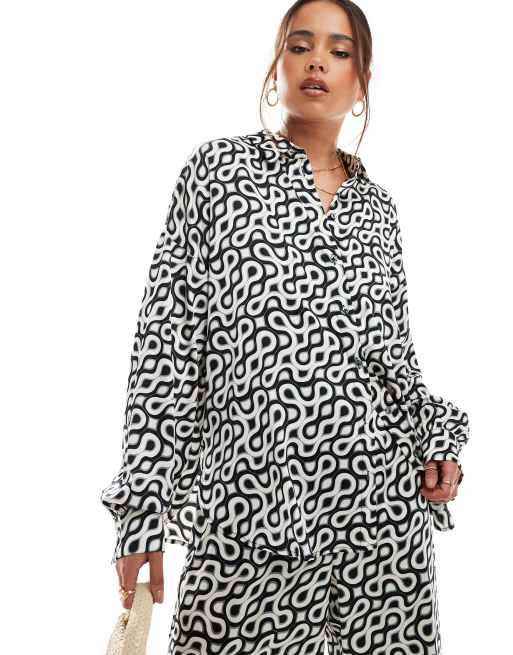 Selected satin shirt co-ord in abstract print
