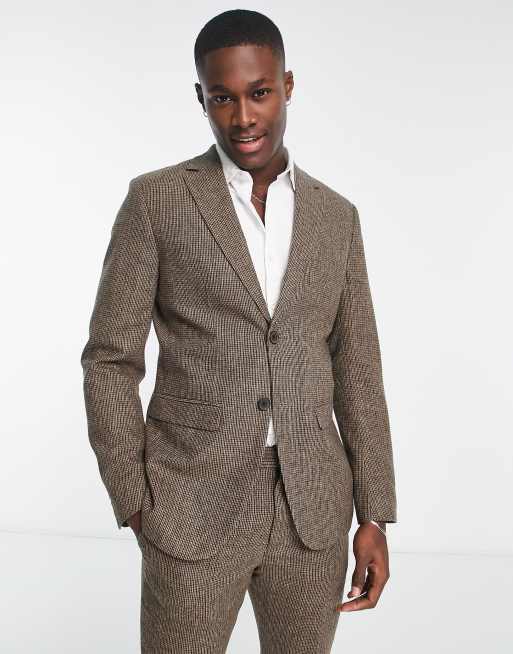 Selected slim fit wool mix suit jacket in brown check