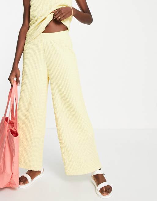 Selected textured wide leg trousers co-ord in pastel yellow