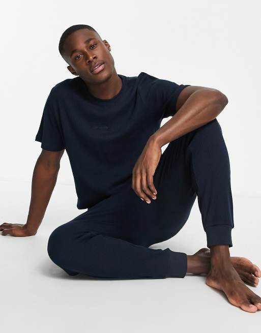 Selected waffle t-shirt loungewear set in navy