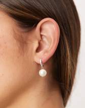 Seol + Gold pearl drop hoop earrings in sterling silver