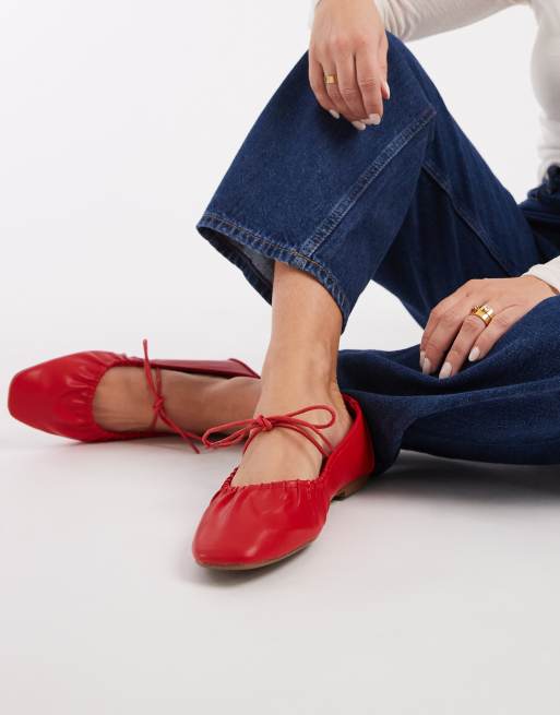 SEQWL Iris Wide fit tie detail ruched ballet flats in soft red PU
