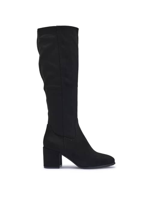 SEQWL Wide Fit Block heel casual knee high boots in black