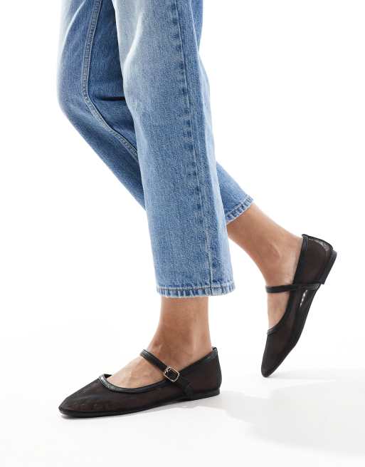 SEQWL Wide Fit buckle strap ballet flats in black