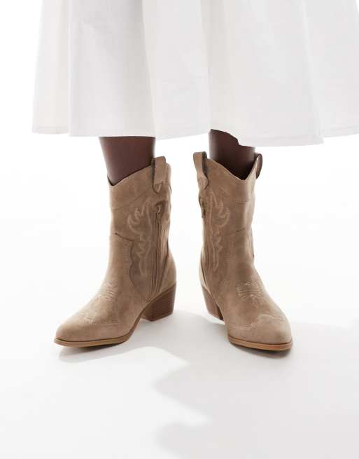 SEQWL Wide Fit Cattle western boots in camel