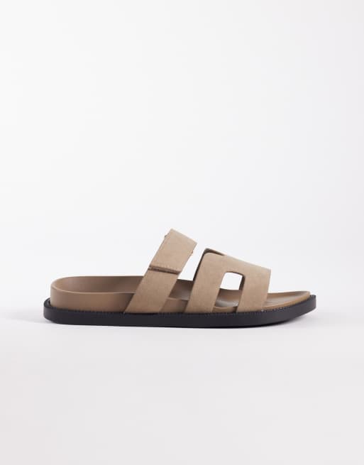 SEQWL Wide Fit Kidman sandals with straps in nubuck taupe