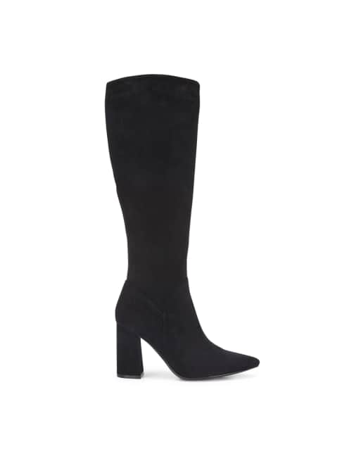 SEQWL Wide Fit Pointed toe block heel knee high boots in black
