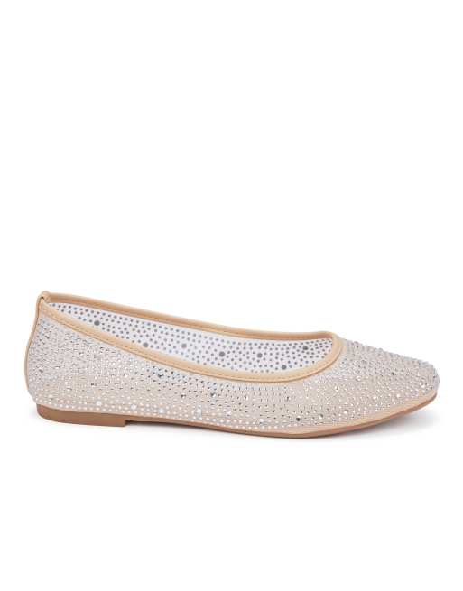 SEQWL Wide Fit Slip on round toe party ballerina flats wide fit in beige