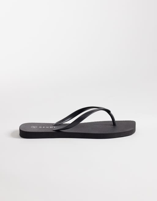 SEQWL Wide Fit square toe flip flip in black