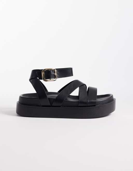 SEQWL Wide Fit strappy flatform sandals in black PU