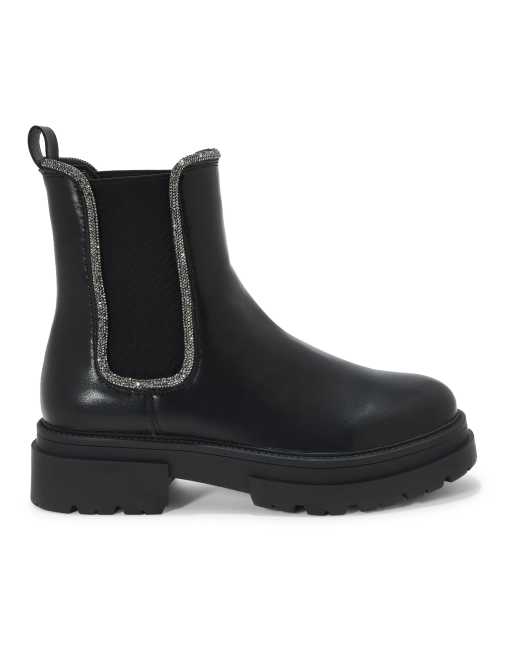 SEQWL Block heel embellished chelsea ankle boots in black
