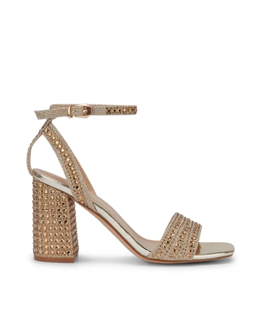 SEQWL Diamante block heel sandals with buckle closure in gold