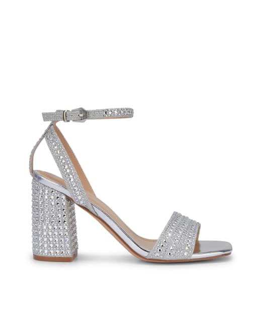 SEQWL Diamante block heel sandals with buckle closure in silver