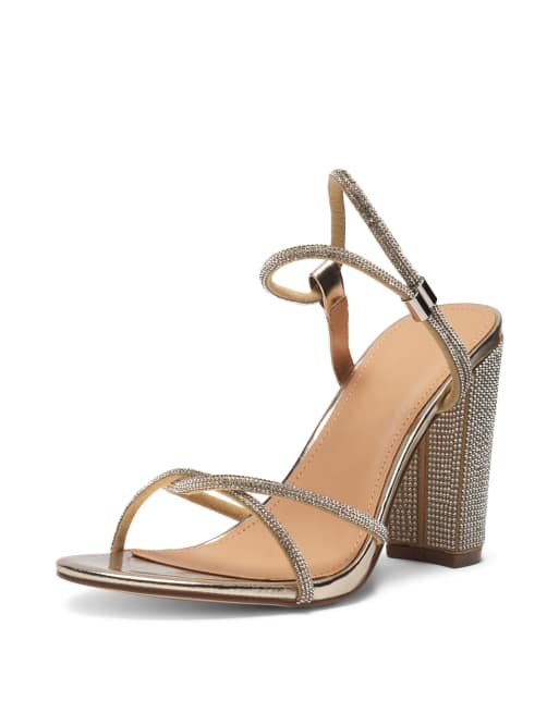 SEQWL Diamante embellished strappy heeled sandals in gold