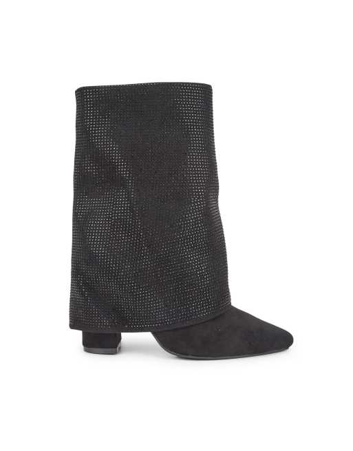 SEQWL Diamante mid heel calf boots with zip closure in black