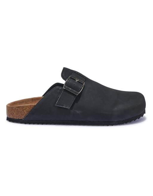 SEQWL flat heel slip-on clog mule sandals in black