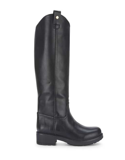 SEQWL Knee high boots faux fur lined stylish slip on shoes in black