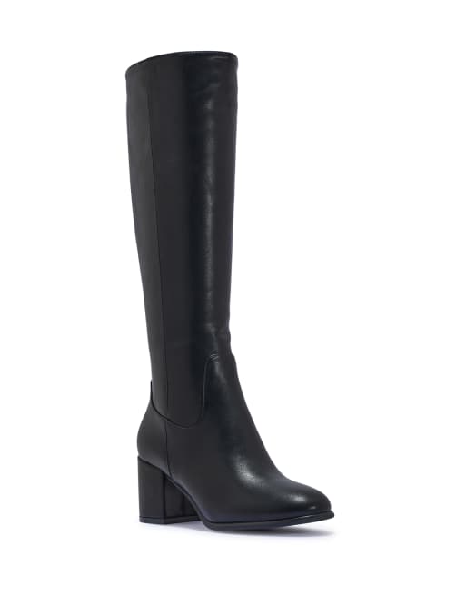 SEQWL Knee high boots with zip fastening comfortable casual shoes in black