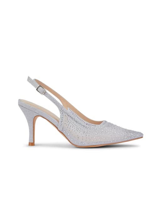 SEQWL Mesh slingback shoes mid heel pumps in silver