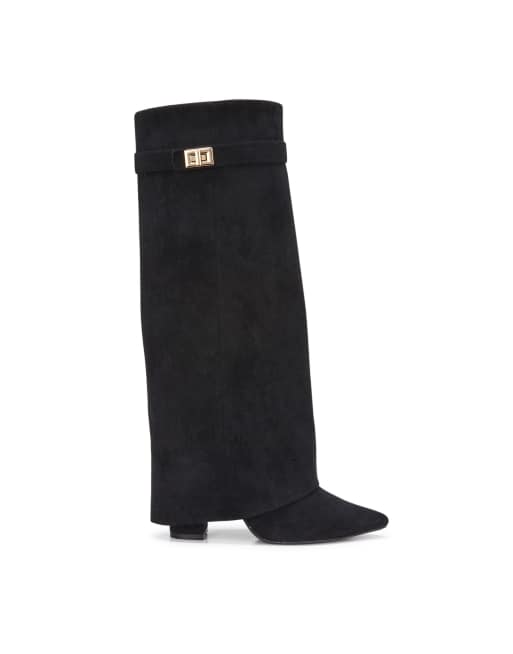 SEQWL Mid heel calf boots with metal buckle and zip closure in black