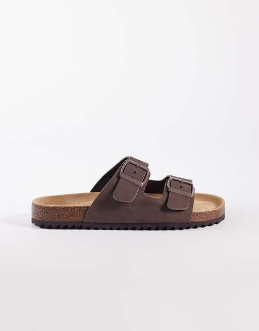 SEQWL Olsen double buckle flat sandals in brown