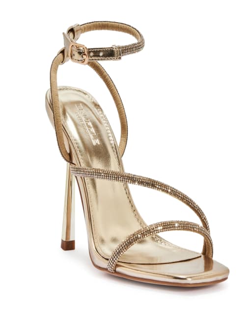 SEQWL Open toe high stiletto heel sandals with buckle strap in gold