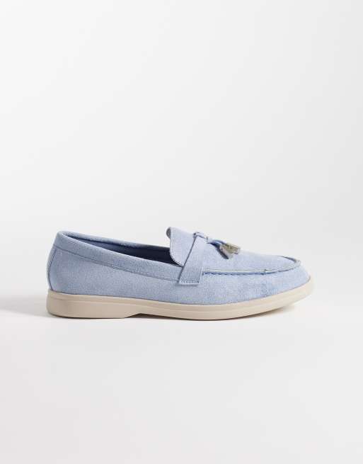 SEQWL Panther tassel trim loafer in faux blue faux suede
