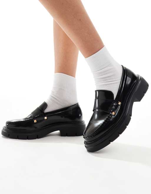 SEQWL Slip on casual platform loafers in black