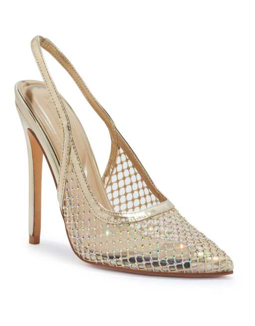 SEQWL Stiletto heel fashion slingback mesh shoes in gold