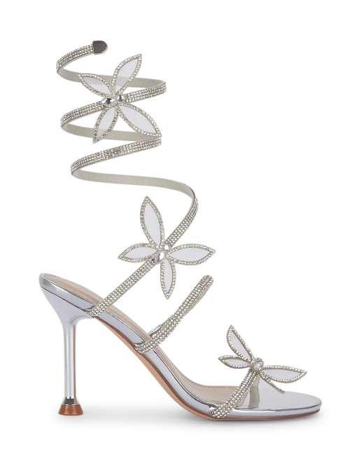 SEQWL Strappy high heel stiletto shoes slip on party sandals in silver