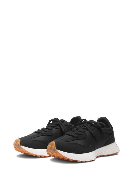SEQWL Wedge lace up casual lightweight sneakers in black