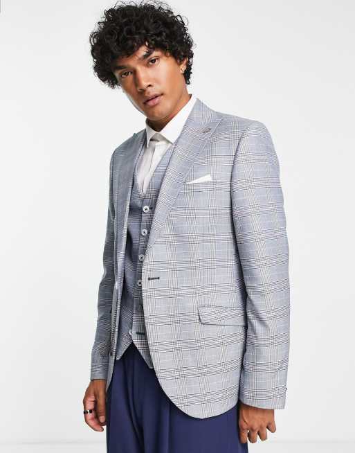 Shelby & Sons earlswood slim fit single breast check blazer in grey