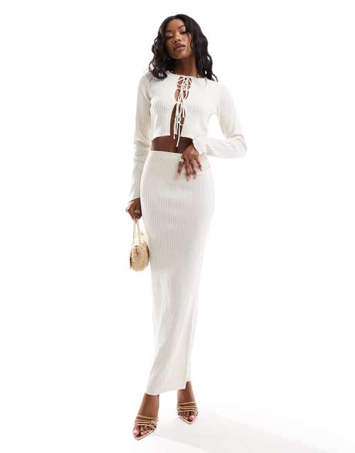 Simmi knitted maxi skirt co-ord in cream