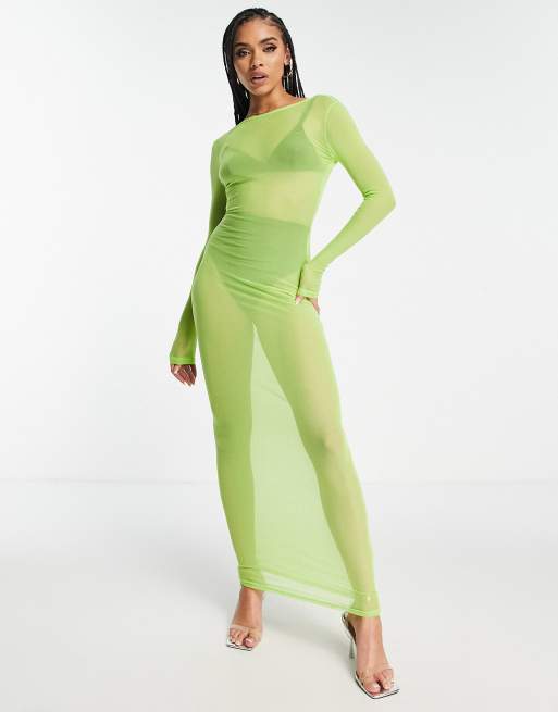 Simmi long sleeve sheer maxi scoop back dress in lime