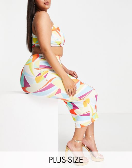 Simmi Plus midi skirt co ord in geo print