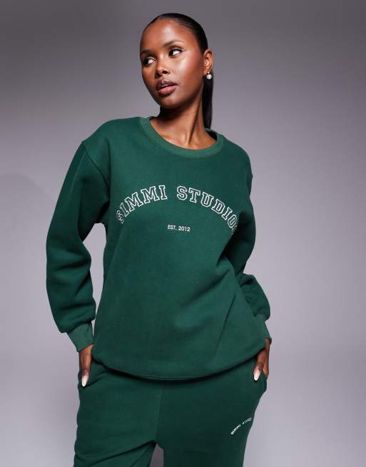 Simmi London Ashby varsity slogan sweatshirt in pine