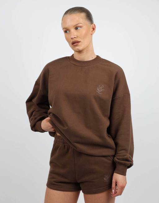 Simmi London Back embroidered detail oversized sweatshirt in brown