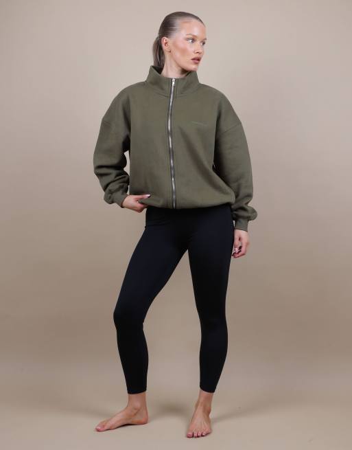 Simmi London Bronte zip through funnel neck sweatshirt in olive
