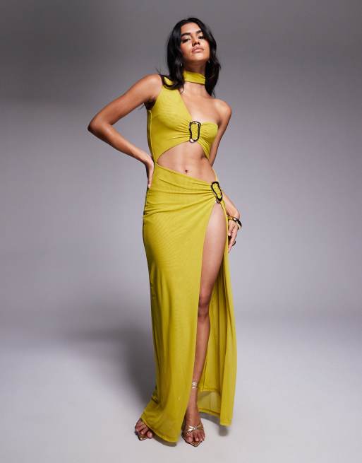 Simmi London Brooklyn trim detail maxi dress in chartreuse