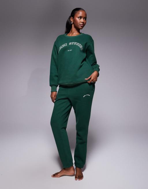 Simmi London Elwood varsity cuffed joggers in pine