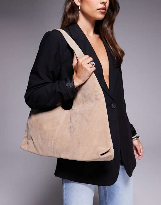 Simmi London Isla large faux suede shoulder bag in beige