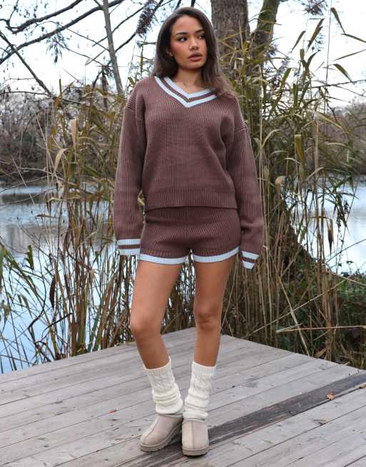 Simmi London Layla knitted mini shorts in brown