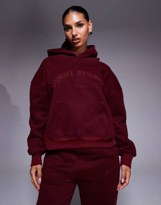 Simmi London Maeve varsity slogan hoodie in cranberry