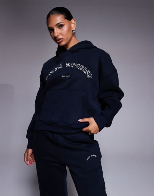 Simmi London Maeve varsity slogan hoodie in oxford blue