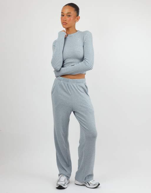 Simmi London Mila soft stripe fine ribbed trouser in blue