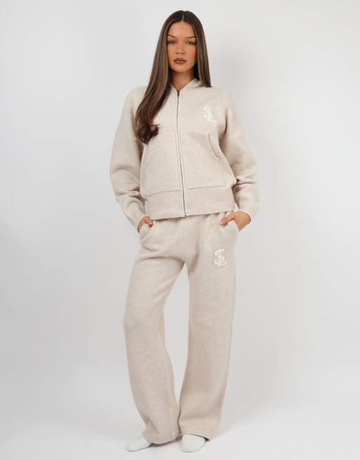 Simmi London Romy chunky knit hoodie & trousers in cream