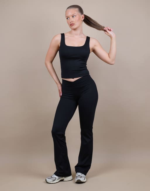 Simmi London Ruched front flared leggings in black