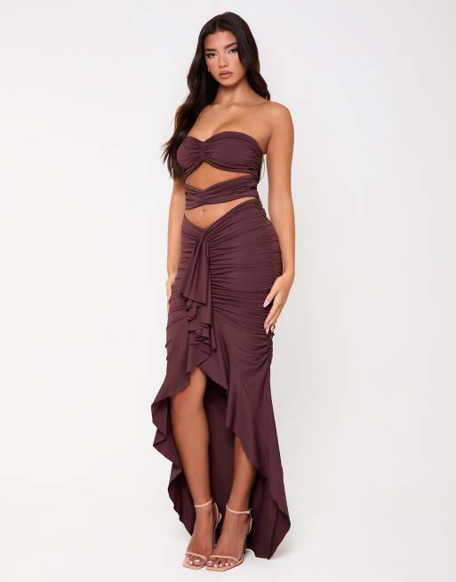 Simmi London Soho chocolate ruched two piece set in chocolate