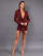 Simmi London tie front plunge shirt & tailored mini skirt in burgundy