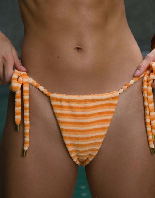 Simmi London Towelling stripe tie side bikini bottoms in orange